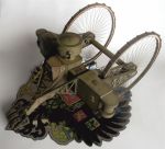 The designer of the Wektor Lebedenko model designed a jig to build the wheels on - this proved to be essential. The spokes on my model are annealed 1mm Copperwire - they were painted black - the reason they are still Copper coloured in the image is the old "quick - get some images - I've finally finished it". I've still got the jig around (somewhere) and will get an image of it.