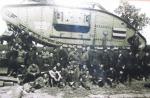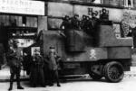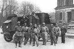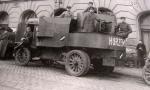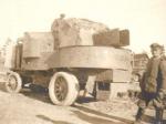 A latvian Garford-Putilov "Laplesis", captured by german and russian Freikorps-fighter. The dead body of latvian driver. The Way to Riga, 1918.