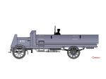 In September of 1914 the Eastchurch squadron of the Royal Naval Air Service under the command of Commander Charles Rumney Samson was sent to Dunkirk from where it carried out attacks on German airship bases. Samson was somewhat of a fire eater and always ready to take offensive action. He had already made a name for himself in 1912 by being the first man to fly an aircraft off a ship. He was later to be a pioneer in the use of torpedo bombers. The squadron was equipped with a number of tenders, cars and lorries. One of these used by Felix Samson (the Commander’s brother) was armed with a machine gun. From the nucleus grew a collection of armoured vehicles as various officers’ touring cars and parts of the squadron’s transport pool were clad with armour plate and had machine guns mounted on them. This was not always successful; at least one car had a habit of shedding parts of its armour when hit bumps in the road. Nevertheless the armoured cars were used for raids into the, fluid, German lines in Belgium. It was soon found that the armour fitted was inadequate, a heavier vehicle was required. Part of the squadron’s transport consisted of commandeered London ‘type B’ buses. Two of these were adapted and became armoured lorries. The cab was covered with armour plate and the main body work was replaced with what was effectively an open topped armoured box with sloping sides over which a squad of Royal Marine riflemen could fire. These vehicles were intended to act as armoured personnel carriers allowing infantry to support the operations of the lighter armoured cars. Unfortunately the weight of armour made the vehicles too slow to keep up with the armoured cars and the armoured lorries were mainly used as mobile blockhouses guarding cross roads.