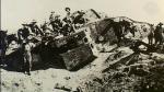 Thank you very much for posting those two, Richard - I hadn't seen either before. I don't think the image has been reversed - all other photos which I have seen of this tank show it in this orientation. I'm certain it is War Baby on Outpost Hill, with the ground gradually falling away to the south towards the old British positions of April 1917. Photos of the starboard side of the wreck show the Mediterranean to the north in the distance. The other female wreck can be distinguished by it's pattern of damage. German photos of that wreck show a deep trench dug immediately in front of the bow. Later photos show the wreck after artillery fire had toppled it forward into the trench, and in these photos a portion of the name "Nutty" can be made out. I'm not sure what caused the splotches on the side of the MkI male. Swinton said that the tanks were camouflaged by throwing sand against wet paint, but some of his other comments about the marking of these tanks are suspect.