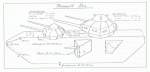 The sketch appeared in a later pamphlet published by Perinelle-Dumay called Tanks in 1933. This was the final manifestation of the design and differs mainly from the original 1918-21 proposal in that the front of the machine's under-hull was formed into a spoon-shaped skid, whereas the earlier design featured another auxiliary track for climbing. The only known original sketch is the one posted by Tim Rigsby, which was from the 1933 publication. Paul Malmassari, in his fascinating article on the project in Steel Masters (No. 17, October/November 1996), writes that no trace of the original 1918-21 proposal has been found, everything is based on the final 1933 version.