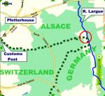 It's getting better all the time. If you go further into that Swiss site you'll find homepage.sunrise.ch/.../schwitte/1914-18_ww1.htm , which has got lots of excellent details. There were German troops in Pfetterhausen, so it must have been they who engaged the French dragoons. There's also this excellent map (most stop frustratingly short of the actual border) which shows where the actual lines were. I've enhanced it as much as I can. 1 is Pfetterhausen, 2 is the Customs Post. The Largue must have been in the middle of No Man's Land. The Swiss were concerned that the Germans might try to outflank the French by cutting across the neck of land at the southernmost point, so they maintained a guard there. How much they could have done to stop the Germans we'll never know. There is a book on this area during the War: