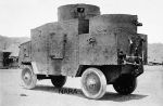 The second car above and possibly also the third type was used by the US Army on the Mexican border in 1916 during the rising by Pancho Villa. Crew 4-5; Estimated dimensions (of a later model) 18ft L x 6ft 4in W x 8ft H; Estimated speed 20 mph top speed, 12 mph cruising; rivets spaced at 4 inches on centre; armour plate ranged from .15 inch (3.8 mm) to .2 inch (5.1 mm) in thickness and could stop a 30.06 calibre jacketed bullet at all but near point-blank range; equipped with two manually operated turrets; Armament .30 calibre light machine guns, either four Benet-Mercier MGs (Fides & Kempf) or 1 Bennett-Mercier and 2 Colt Potato Digger (Haugh) or four Benet-Mercier and an additional two in reserve (War Wheels).