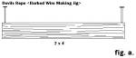 Barb making. < fig. d.> This is fairly easy, take your strands that you have braided, and tie them off on to the second nail of your jig.After determining how many barbs you need per square foot, take your wire, and wrap around the braided wire at the right intervals, and cut it at an angle with your pliers.Now this is where the collection of information will help, as I stated above, you will need to know how many times you should wrap the wire around the braided section, and whether or not the barbs are intertwined with the wire or just wrapped around it.