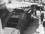 ...It served with 16th Battalion, Tank Corps in 1918 as a Male. It had a hard life, being first knocked out by a 77mm field gun at Regnicourt on 17 October 1918. Four of its crew were killed: Cpl Drewitt, and Privates Daniels, Doig and Fensome. It next appears fighting in the Russian Civil War during 1920-21 and was captured by Red Russian forces in Georgia in 1921. Now we have it in Berlin in 1945 at the end of the Second World War. That's quite a career...