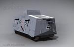 It looks to me like the A7V-body - but not the tyres or the driver - is photoshopped. It looks a bit brighter, different somehow, than the rest of the picture. That's my guess.