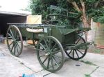The other three known (wagons) are painted green. This wagon was definitely grey. Traces of grey paint remaining on under surfaces. The wheels were rebuilt; most of the timber in the boat of the wagon was replaced. Some under timbers are original and most of the ironwork is original. A new seat, box and brake assembly were formed by the restorer. Painted grey indicates pre 1914/18 War. This vehicle may have seen service in the Great War."