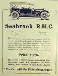 Seabrook's own Light Car should have been at the 1919 Olympia Show but was delayed by strikes. The 1920 show lists a Seabrook-RMC, this was not similar to any Regal model and it is likely that a mistake was made in the show catalogue and this was Seabrook's Light Car. In 1926 the company moved to 107 Kings Road, Chelsea, London SW3.