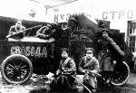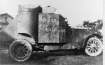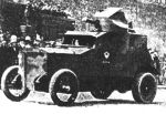 On the armored car reduction is written: Isp. Kom. S.R.S. i Kr. Dep. I do not know precisely, but I think that it: Executive Committee of the Union of Russian Socialists and Red Deputies. It is a photo of 1917. Petrograd, bolshevik revolution.