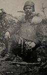 I am attaching a copy of one of my absolute favorite photos in my Belgian images collection: A Belgian wearing trench armor and a Farina style helmet holding a Mauser bayonet in his teeth. Below his armor, you can see a small bevy of Aasen-style grenades.