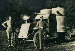 "Gussmatique" (Gussmatic) - these are Russian tyres (J. Guss's patent 1912, St.Petersburg), filled with a special chemical compound as foam, they held shots from weapon (rifle), but were lungs and allowed to go quickly as on pneumatic, and English tyres were from continuous rubber as at trucks, on them quickly it was impossible to go. Other photos "Oleg" (only litle), Wheel of Austin with Gussmatic and advert of J. Guss.