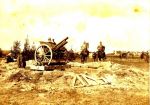 I have the same photograph of the russian gun and an other with the carriage hauled by Holt Tractor.I think the gun is a russian 152 mm coast gun modified for road moving. Yours sincerely, Guy François.