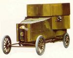 Another War Office-inspired armoured car was the AC, which was a complete contrast to the bus (the previous paragraph mentioned the armoured B type bus). Built by Autocarriers Ltd. of Thames Ditton, Surrey, the AC was one of a range of light motorcars that were gaining popularity at the time. It was powered by an 1100cc Fivet engine driving through a three speed gearbox built into the rear axle. Curved armoured doors shielded the radiator and the fighting compartment consisted of a large circular shield with a single machine gun port, resting on top of the hull. This gave the car a particularly top-heavy look and, despite the fact that the suspension had been almost totally rebuilt to cope with the weight, it seems that the chassis was altogether too light to carry the load. Photographs show the car with as many as five men on board although a crew of three would appear to have been more than enough. It was tested at Aldershot and presumably rejected, since no more was heard of it