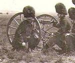 Anyway, there are a few pics of Grenadiers with this gun, probably all taken on the same day. From memory, a Cavalry regt was attached to each Division, so I suspect this was a horse-drawn weapon, like the carriage-mounted Hotchkiss used by the French. In fact, it's possible that the Grenadiers weren't supposed to be manning it at all; it could be a bit of licence on the photographer's part.