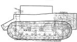 It was a curious machine. The diameter of the turret was 1.8 metres - 6 feet - and it was only 0.4 metres deep. Total crew was supossed to be 3 or even 4, in a vehicle only 1.9 metres high, 1.9 wide, and 4.1 long. The turret had integral seats for the gunners, so there must have been some sort of mechanism to rotate it, either some form of crank or maybe it was powered somehow. The machine was on a 7-bogie Holt-type chassis.