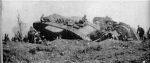Photos which show the roof of a MkI are rare - a rather poor quality pic of two tanks ditched in Delville Wood on 15/9/16 is seen here. A better quality pic of the tail of a wreck from 15/9/16 (taken in 1917) is also attached - is it weathering or camo? (Thanks to Mark, who sent me the original). I'm fairly sure the grenade roofs were not painted - they were assembled and shipped to France almost literally overnight. Camouflage was applied to the lower, as well as the upper, bow plate.