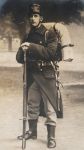 the tent-section intrigues me: was it something you could wear as a poncho too, and button it to the other section having a complete shelter? And were there pegs and poles (in sections) too? Was it rolled over a blanket? (I remember these from my service days, through the "ventilation" openings you could put your arms through, having a poncho). I read (must look it up) somewhere that the Belgian army, short of everything when digging in at the Yser, tent sections were issued again after a while but only one for every 4 men or even more as far as I remember. "Tentzeil" is the Dutch/Flemish word for it, when small it's "zeiltje". And how was the knapsack theme arranged for the cyclists anyway? I never saw a picture of a 'full' equipped cyclo soldier. They wore a short cape, remarkable peaked caps they had too!