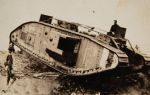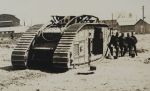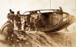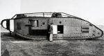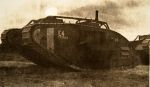 Finally, I am enclosing a copy of the third image, also from the Company A history, that shows what is most likely Lt. Webb's Mark V* Male no. 9604. Though the horn is not visible, the painted insignia foward of the sponson is certainly characteristic!