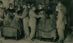 Not in uniform - but below is a picture of her with a lot of uniforms. As it says in Iso Rae in Étaples It was not until 1918 that sixteen men were appointed as Australias official war artists for the First World War. No women were chosen. Yet there was an Australian woman artist who lived in France for the whole war, and who since 1915 quietly documented the activities of the Étaples Army Base Camp. Her name was Iso Rae. A number of her works are documented in the link. Here is one more, called Nocturne with tents Ah yes, all those white-washed stones lining the pathway. What army camp could be complete without those?