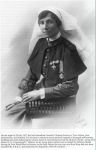 this is Mrs. Winterbottom from Boston, Massachusetts. Her husband was a British officer. Somehow she must have followed him because in 1914 she 's in Antwerpen, with her own car. She drove around for the British Field Hospital. She followed the Belgian troops to the Yser and began a recreation tent. Soldiers nicknamed her "Miss Cacao" for her free chocolate drinks. And she got a rank too: erewachtmeester. 'Ere' (adjective from 'eer) means honourable. Wachtmeester (literally guard-master) is sergeant. I think it's an artillery rank or military police. And ordinary police too, at least in Germany. The I on her Belgian 'muts' stands for the 1e Legerdivisie. The star on her lapel is for 'ere onderluitenant' the rank given to her after the war. Miss Cacao went back to the US in 1919. She is wearing the 'frontstrepen' on her arm. Important for Belgian soldiers, their pension or payment when invalidated was related to the frontstreep, which you got after a certain amount of days in active duty. I am not that good in uniforms but the tasseled cap is called Veldmuts(field cap), or Politiemuts. The tassel is very typical, maintained till 1940.