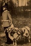 This is Derby of The Sherwood Foresters. Or Derby II, or III, as Derby I died a classical sheeps death. He fell into a well, drowned and so he met his Maker. His Maker? Yes, according to the local padre animals have a place in Heaven too. Well may be not all, but sheep & lamb most certainly were amongst them. Derby: 6 months' training (handler too). On the program: marching, turn/halt to the sound of the band. Monthly shampooing and dried with a hair dryer. Personally, Derby isn't my favourite kind of sheep. To much horn, (no I will not make the joke), the showing-of type. As many others, with 4! horns or horns like a spiked French bayonet. My points are for the "Skudde" sheep, as I favour the meek and small. It's from Eastern Prussia, only a 1000 still exist, it's very meek (and of course near to extinction), very small and very cute.
