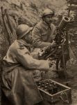 this picture of a French mortar team: I find the mechanics on the mortar intriguing, especially the spring. Can any one identify the weapon? The poilus are neatly dressed, no mud smears at all. One of these 'action' pictures made for the audience at home I guess but giving a lot of details to study.