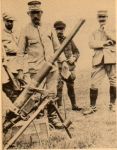 this grenade throwing contraption: a do-it-yourself product I presume? It looks if there's a rifle sandwiched between in. The second picture: an Edgar Brandt invention, a 60mm air-operated mortar.(I also read somewhere that it's a 75mm, may be two types were existent?) Air: I think it was CO2, 'gaz carbonique'. Pressure went from 2 till 15bar, more than 15 shocked the tripod to much, a safety valve prevented more than 15bar anyhow. As I am not a mortar expert at all, I hope others can tell more about this weapon.