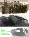 Certainly the upperworks appear different in the two 'original' photos and Cheffy's 'new' photo - as Cheffy did, I also counted rivets(!) and the upperworks appear to be 16 rivets long in the middle photo of my comparison, and 19 rivets long in Cheffy's. But given that the machine in Cheffy's photos also has two turrets which are clearly absent from the other photos and are thus indisuptably additions, then it's not much of a stretch of the imagination to accept that the entirety of the upper section may have been simply a lightweight (boilerplate?) construction which was changed at some point for a new upper section large enough to accommodate the two turrets. The hulls in the photos, however, are definitely identical and in the absence of any evidence to the contrary, there is no reason to not suppose that they are one and the same hull, rather than two identical hulls.