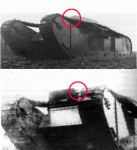 There's a slight difference in the shape of the hull in the two old pics. Maybe the British did a bit of experimenting with it - trying to fit parts of a cab from a rhomboid or something. Just a thought.