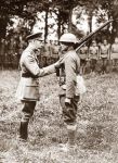 This time a man with a Lee-Enfield No 1 Mk III* from the 132nd Infantry Regiment, US 33rd Division which saw action at Hamel (4 July 1918) where they operated (as noted earlier) in platoons within the Australian battalions. This picture was taken later, 12 August, and shows Pte Harry Shelley being awarded the DCM (British) by King George. Picture and information from http://1914-1918.invisionzone.com/forums/index.php?showtopic=135393 - and it seems he later received the US DSC for the same action (so they did 'double medal'). The award is also pictured in History's Greatest War but with several small inaccuracies in the caption.