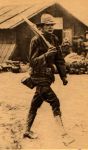 Well, here a doughboy walking and one with a bayonet, slope arms position, though not on parade but standing guard. The French on the march, that's 'bravoure' I think, dust on the uniforms and kepi but may be these men hadn't 'seen the elephant' yet. Carrying their rifle rather high on the shoulder. The British soldier had it easier I guess, he certainly had seen the elephant and his rifle too, no other way to carry it back I presume. Then, as it was all about Lewis guns in US service: training walking fire here.
