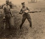 William Knight(first class) using a lewis gun as an Automatic rifle
