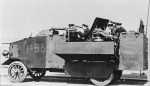 The caption under the first pic reads: "armoured cars of the naval air squadron assisting british lines at ypres" The second picture, seemingly the same AFV, is from a PC game and claims the vehicle is an SPG.