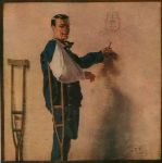 Can anyone tell me more about this picture? The signature says 'C S'. As far as I can determine, it's an oil painting on canvas. An old theme by the way, the painter being painted. This gentleman, a war invalid that's clear, is working on a cartoon like portrait apparantly of the foe.