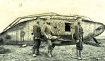 - German soldiers curiously examining an abandoned tank