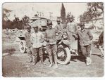 It appears that the writing on the side says "12th Battery", "L.A.M.B. DE", and "LC^0807". At the risk of exposing my ignorance of period uniforms, the gent at the left appears to be a German while the rest of the soldiers appear to be Turks. Is this correct? Also, can anyone identify the badge on the car door behind the German(?) soldier?