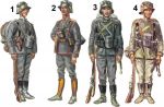 and a Jäger zu Pferd 1917-18 in what looks like 1914 uniform but with Stahlhelm.