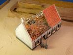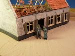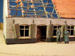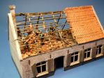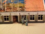 I see that for the walls you use plastic card from either Vollmer or Faller, but what do you use for the roof tiles on the destoyed building? Both firms have sheets of roof tiles, but they are flat on the underside and these seem to be vacuformed. And what material do you use for the wooden beams in the destroyed building? Wood or plastic? I also like the addition of the lead strips between the roof tiles. Very realistic! But what material do you use to produce these?