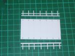 Each side of the bed has been drilled with seven 0.6mm holes which were then opened up with the tip of a no. 10 scalpel blade into rectangular slots for the side rail uprights to drop into... at the moment they're just sat in the holes to test the fit but will be glued in once the painting is completed.Â