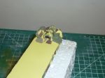 Each side of the bed has been drilled with seven 0.6mm holes which were then opened up with the tip of a no. 10 scalpel blade into rectangular slots for the side rail uprights to drop into... at the moment they're just sat in the holes to test the fit but will be glued in once the painting is completed.Â