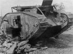 I've taken a closer look and come to the conclusion you're right. Obviously you can't see much of the tank behind, but the tank in front is a Mark V. That leaves me a bit stumped as to location, because I'm only aware of the Wehrmacht encountering Mark Vs in Russia and (what are now) the Baltic States. I have seen a similar photo before (which infuriatingly I can't put my mits on at the moment).