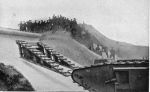 Also; how was the ramp attached to the front of the Tank and subsequently released? The photo appears to show it clear of the wall at the front and attached somehow to the front of the vehicle in what looks like an impossible fashion. Logic would suggest that the front of the ramp would have to be in contact with the wall, with the Tank simply pushing it. Once the ramp made contact with the lip of the wall, the Tank would have to reverse, to allow the ramp to drop into place (and, one assumes, stay there), and then proceed up it. That's how it looks to me, anyhow.