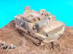 Greetings one & all, Thought I'd post a few images of my latest project, It's the 1/35th resin Commanders Series Schneider CA1. The original images were sourced after doing a quick google search and are only included here for discussion purposes and to illustrate features I've tried to incorporate into my model. The model itself has features enabling either a late or early vehicle to be built, I wanted to go with a late cammo scheme so built it as such. The kit had some issues re quality of casting, but nothing that couldn't be overcome with a little use of thinned tamiya putty ie: rivets that weren't properly formed. There were a couple of smaller parts that I had to re make because it was easier to re make them rather than to straighten the resin parts.. but that's an ongoing issue relevant to any resin kit I guess & shouldn't deter anyone from obtaining this kit. I've read mixed comments regarding Commanders Series over simplification of suspension components and have to jump in and say that this isn't the case here, I found the kit supplied parts suitably complex and provided enough out of the box to produce a good representation of the real vehicle. I used nothing more than scrap plastic and items from my spares box to stow the vehicle (I'm quite happy with the way the wicker baskets turned out). keen eyed observers will notice some irregularities between the built images and the final images, I just didn't like the look of the tools and bucket on the rear of the vehicle, so I left them off, likewise the pully arrangement for the signalling board was replaced with a more accurate version prior to painting, and finally, after the last photos were taken, I took a drill to the lamp and fitted an MV lens. Originally I had intended to use three figures, wonderful new resin figures sourced from MasterClub in Russia, but the balance just didn't look right so one got deleted. All painting was done using tamiya acrylic paints and then various oils were used as washes and filters. No pigments have been used on either the model, figures or base, I wanted to avoid them and see if I could achieve a dusty worn look using paint effects only. While I've declared this project finished and any suggestions for improvements are going to be hard to incorporate, I still encourage you to offer your thoughts, any comments, good bad or otherwise are eagerly sought so I can avoid repeating them in my next project, so please let rip. If you've made it this far, thanks for reading... I hope you enjoy the following images. Regards, David Scorer.