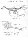 The inverted V shaped lever is a possibility, although, as you say, it's a bit contrived solution. Maybe later we can know for sure. By the time being,however, here are a sample of the miseries of my work-in-progress drawings, and the kid of notes I take to later draw more accurate details. Some (like the brake lever) might have their own scrap view, as some of the details might end lost in a GA drawing. For the time being, I won't make a definitive chassis drawing, as I keep discovering new details to add to the basic chassis beams.
