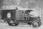 This one seems much larger than the previous -and simpler- ambulances on Commercar lorries. I guess there was some form of articulation between body and cab. BTW note the long board placed at the side of the vehicle. Probably the rear of the cab had some sort of tools or materials stored in there.