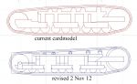 In the attached screen shot, the red is the model as-is. The blue seems closer to what I see in the photos and some of the more recently-received line drawings. Do you have any comments or recommendatons?