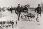 This is the photo from which the M&T illustration was taken. M&T have coloured the cap of the man in the centre a pale blue, but, as I say, they've misunderstood the situation. He's wearing a mixture of items, which was quite common. He's got the pre-War ammunition pouch, socks instead of gaiters or puttees, trousers that could be anything (perhaps the "wine red" corduroy), 1914 pattern dark blue infantry tunic, and a khaki, British-style cap. The Yser kepi was a different thing altogether; the photo below is either the Transport or Admin Battalion version.