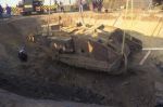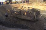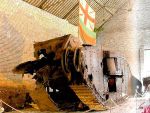 The story i was given when in France was that she was pushed into the hole by the Germans to 'clear the way'. Would that explain why the back splays out from the effect of dropping in backwards? And why the damaged offside track has unwound along the top towards the back?