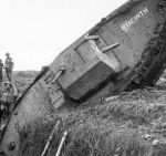 Here's another tank, a Mark V in this case, with the camouflage in the form of a "Z". Incidentally, I recently found a good quality close-up of the front of the cab of "Egbert", the touring tank, and that also has this type of false vision slit painted on it.