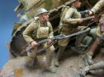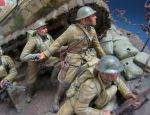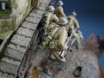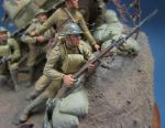 The diorama is impressive, good composition, all elements nicely rendered, variety of natural poses and quite accurate setting. I love it, yet, if I had to make a slight critique (I'm a non conformist!) I should say that the putees on the soldiers are a bit on the narrow side, causing them to have lots of turns around their calves (that makes them look a bit strange). I don't know neither if American soldiers went over no man's land with the full backpack, but it's a detail that looks jarring as well, when all armies made assaults or patrols with the most basic elements for their task.